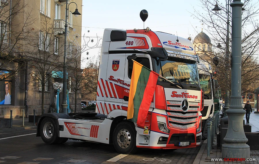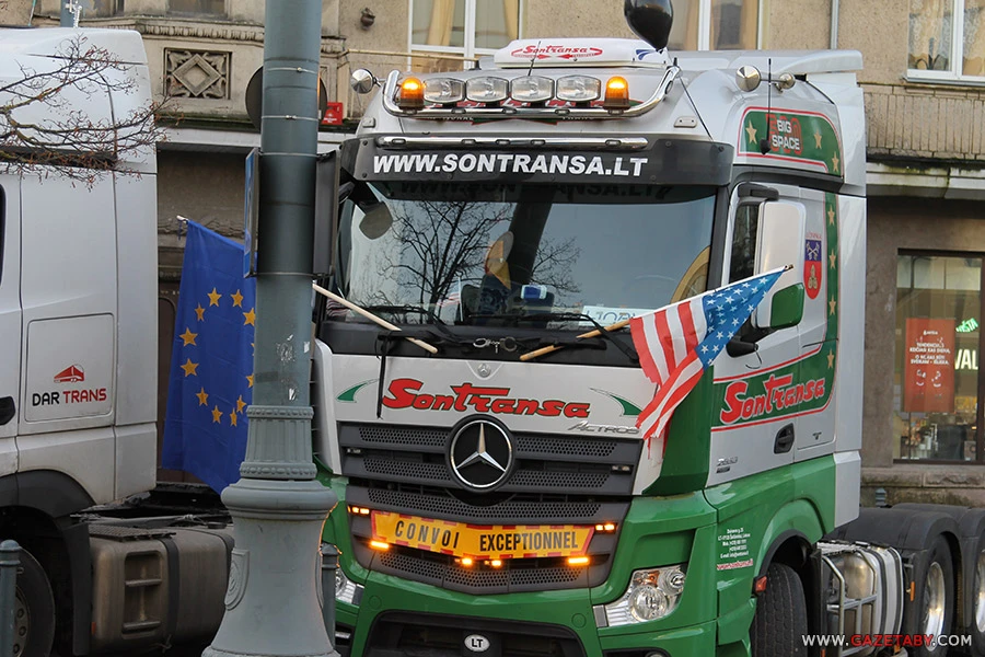 10 декабря в Вильнюсе прошла акция перевозчиков, организованная ассоциацией Linava в знак протеста из-за заблокированных в Беларуси транспортных средств литовских компаний.