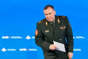 Середина первого периода: партнер по команде при прессинге соперников посчитал за лучшее не пасовать на Лукашенко. Тот стоял вообще без движения. Вместо того, чтобы откатиться в сторону, правитель испуганно выставил руки вперед, опасаясь, что в него врежется проезжавший мимо соперник.
