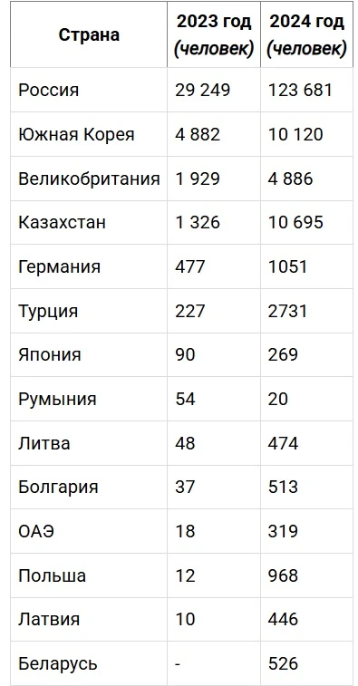 В Беларусь в 2024-м отправились 526 человек. Эта цифра не идет ни в какое сравнение с количеством мигрантов из Узбекистана, которые работают в России, Великобратании, Германии, Южной Корее, Турции.