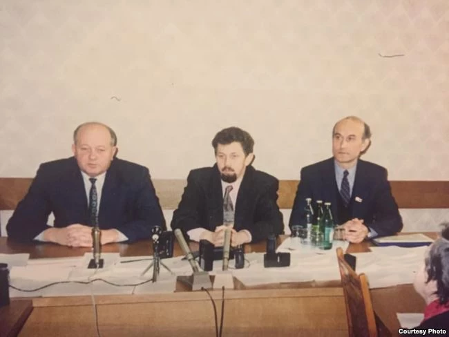 Генадзь Карпенка, Сяргей Навумчык і Зянон Пазьняк на прэс-канфэрэнцыі ў Вярхоўным Савеце, 1995