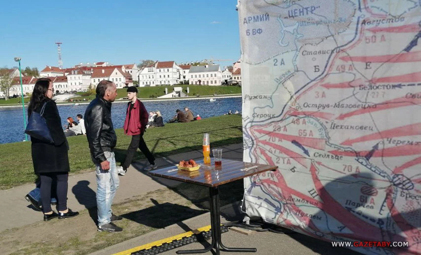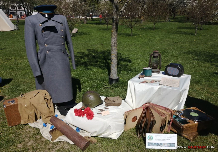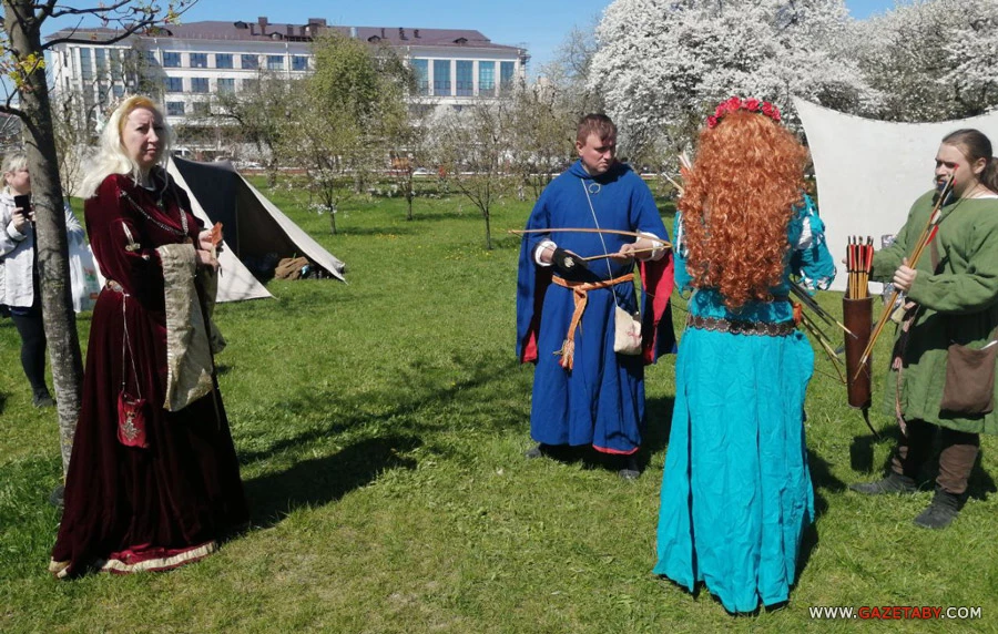 В Лошицком парке тоже было многолюдно. Можно было рассматривать тематические военные инсталляции, подготовленные школьниками, сфотографироваться на фоне героев других сражений во время рыцарского турнира.