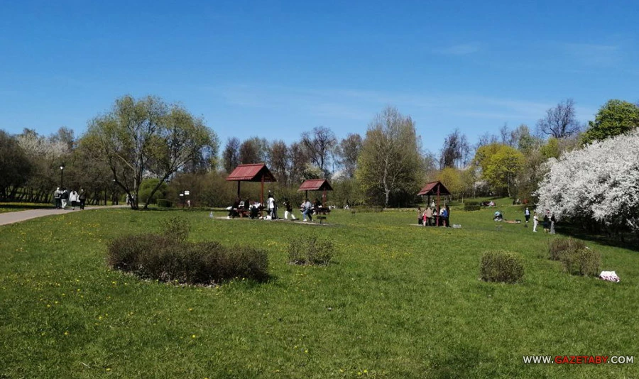 Желающие слушали самодеятельный концерт, а многие просто гуляли по цветущему парку.