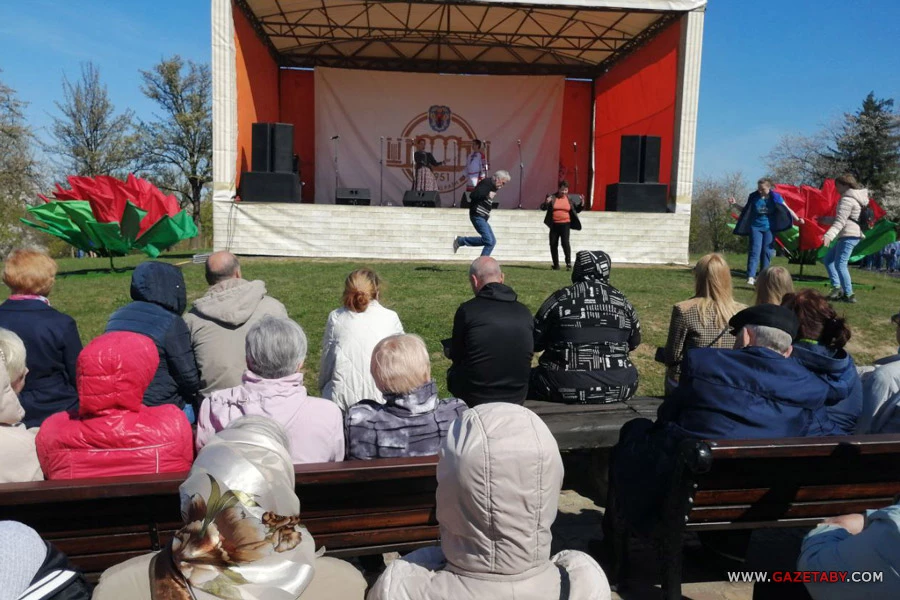 На сцене у «Чижовка-Арены» дети пели патриотические песни, между номерами ведущая обращалась с эмоциональными пожеланиями: «Чтобы нынешняя молодежь, нынешние дети, родившиеся в мирное время, никогда не видели ужасов войны».