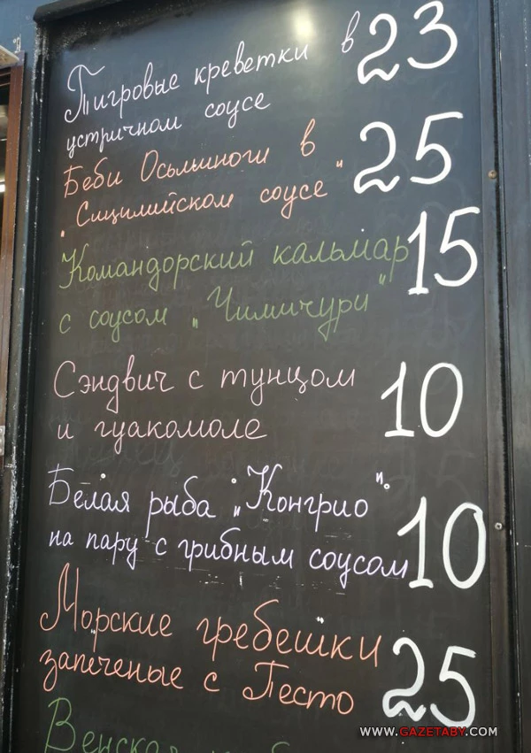 В меню кроме шашлыков и солдатской каши предлагали изыски и деликатесы — тигровые креветки, осьминогов и даже морские гребешки.