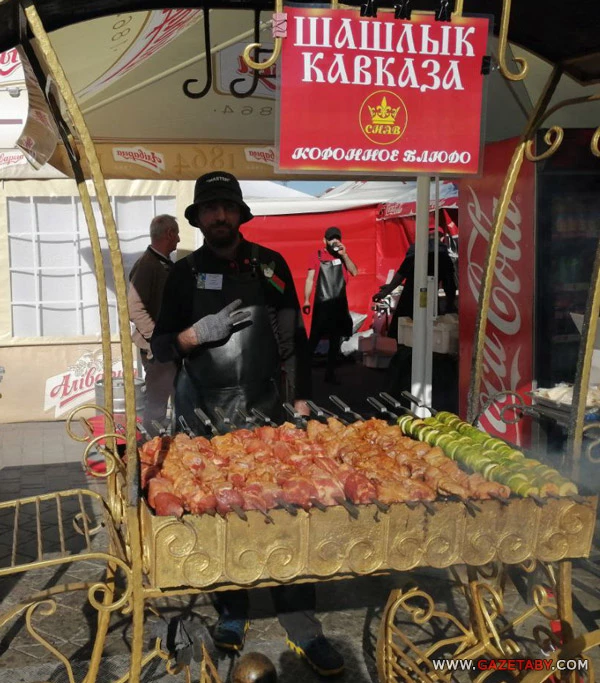 От Дворца спорта и до Стелы развернулись тематические военные площадки. Но большинство отдыхающих привычно тянулось к импровизированному фудкорту и сцене. После обеда дым от шашлыков начал разъедать глаза. Кроме свинины, предлагали каре ягненка, говяжьи стейки, форель и лангустины.