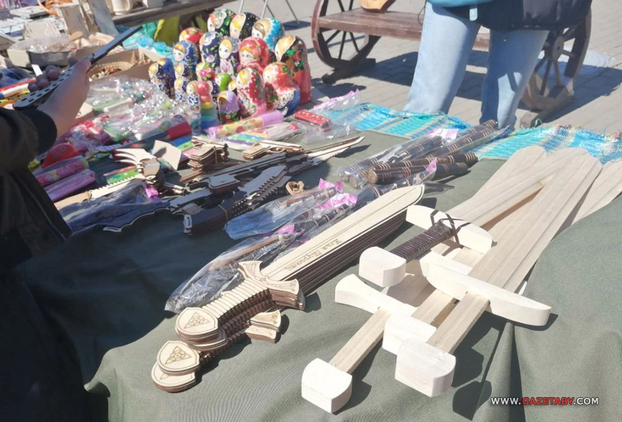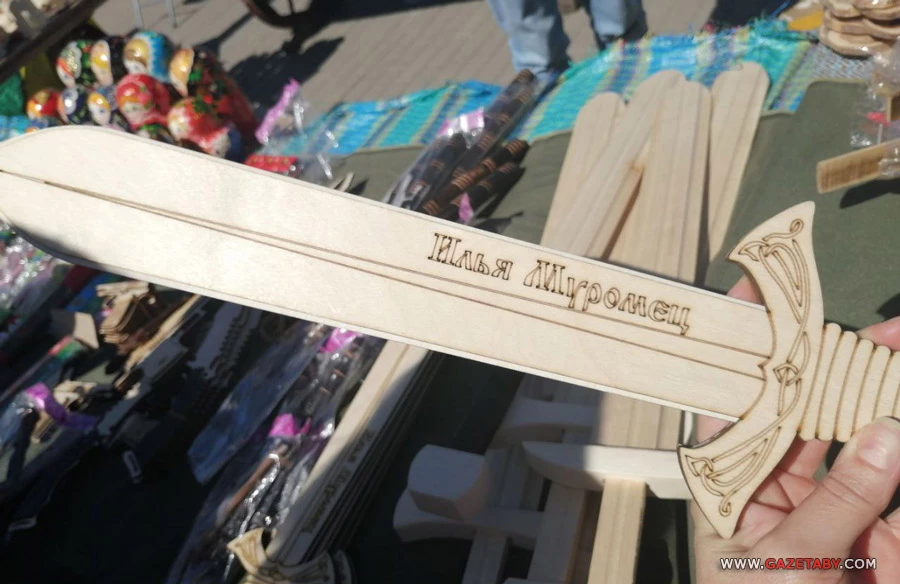 Тут же продавали мечи с именами русских былинных героев и матрешки.