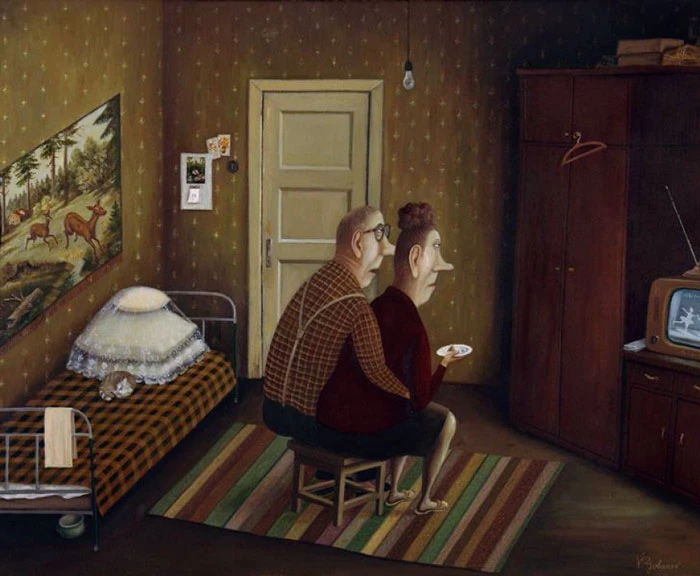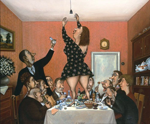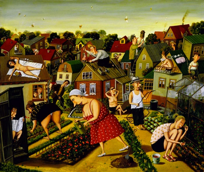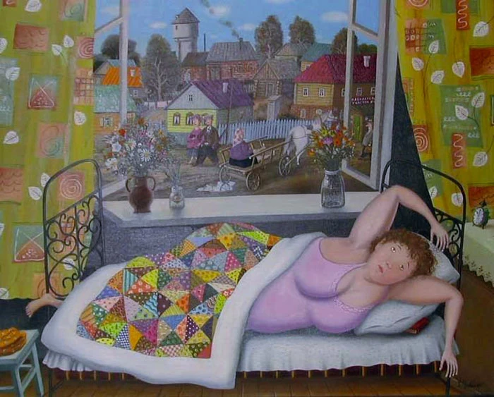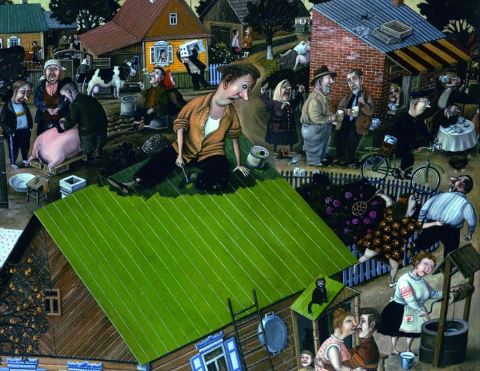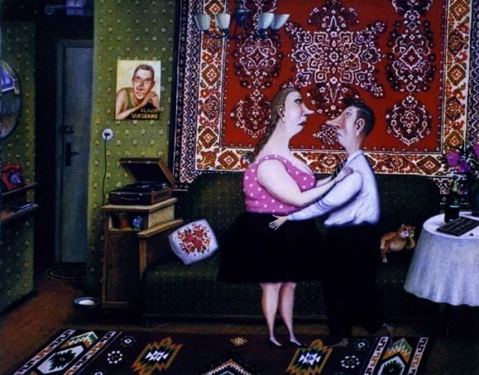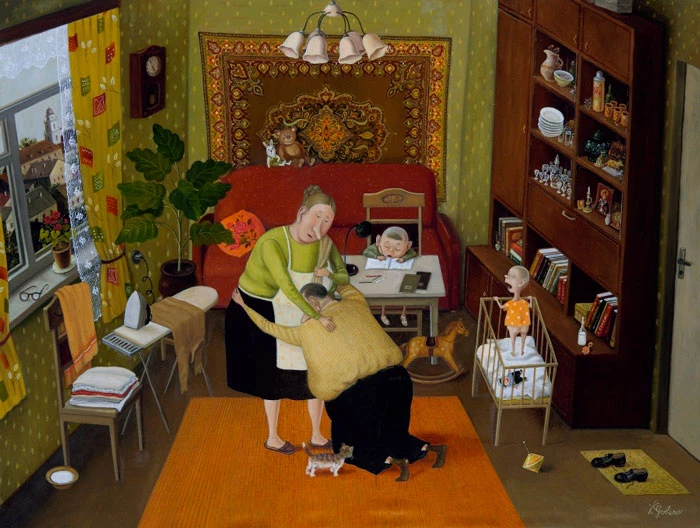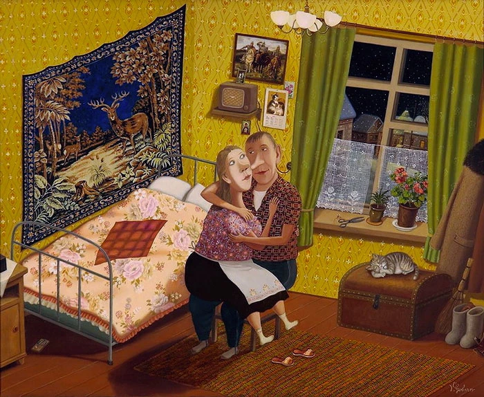 Но тем не менее, мне никогда не говорили: «Это не наше. Нам непонятно. Рисуй нашу жизнь». Я делаю то, что мне нравится, и порой меня удивляет, почему это проходит. Но я понимаю — почему. Ведь предметы, бытовые особенности, свойственные нам, — не это важно. Важно передать чувства. Немец, швейцарец, норвежец — все они любят и ревнуют, злятся и радуются. Они прочитывают в моих картинах душевность, грусть. Поэтому их и трогает.