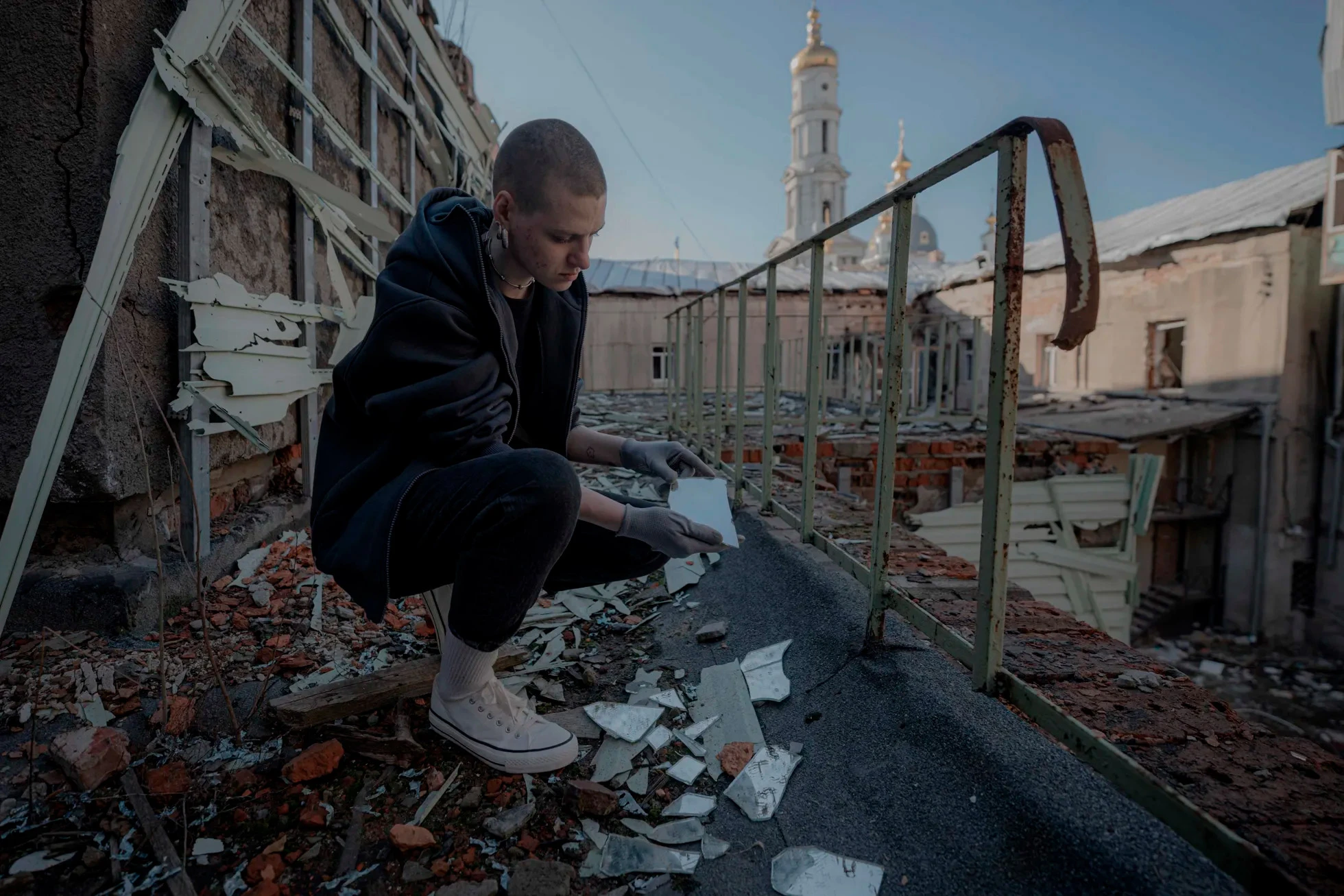 21-летняя художница из Харькова Валентина Гук создает мозаики из осколков, собранных после обстрелов города.