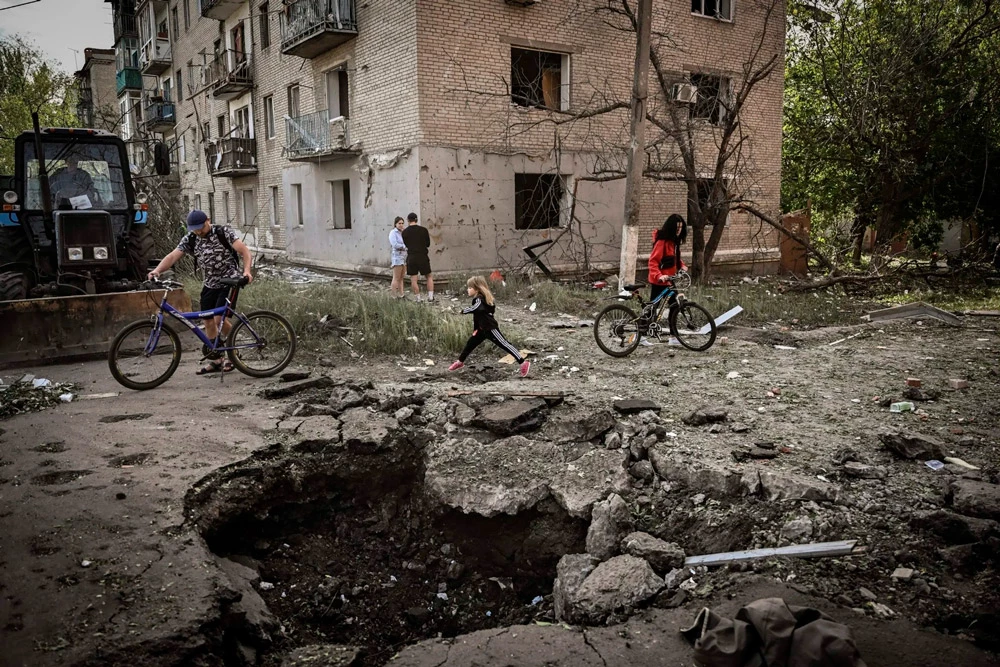 Российские войска готовятся к штурму Славянска. Город давно обстреливают: местные жители уже проходят мимо воронок от снарядов, не обращая на них внимания.