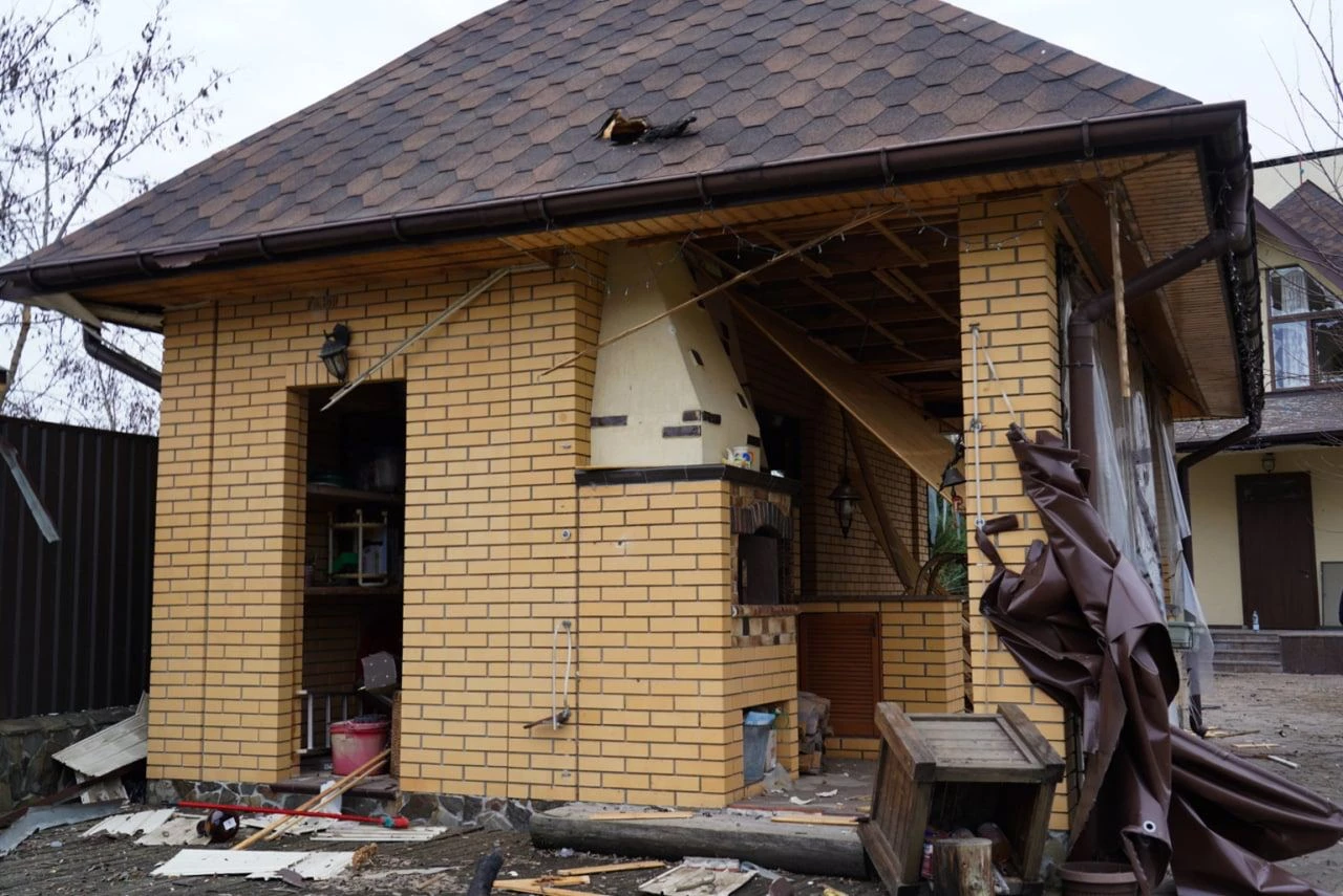 Последствия ракетной атаки в Бучанском районе Киевской области публикует глава ОВА Алексей Кулеба. В домах выбиты окна и двери, в некоторых – кровля. К счастью, без пострадавших.